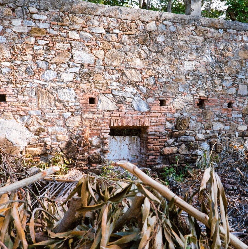 Vegetation piling up in a dumping area next to old slave quarters. Slavery of Africans, Tainos and Chinese was prevalent from the 1500s to the 1800s.