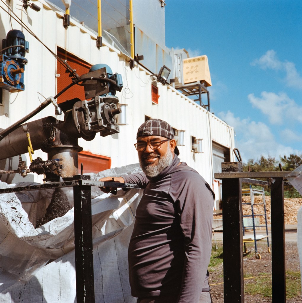 Getting to spend time at the biochar production site was a special experience, aside from the fact that I have spent years nerding out on the subject. What I was witnessing was the largest scale biochar production in all of the Caribbean. One of the people that I met as a part of this operation is Robert Omi, who is responsible for the settings on the Dragon, the pyrolysis machine at the production site. I sat with Robert while he showed me some of the settings on the monitor for the Dragon, and we discussed some of the decisions that he is faced with as an operator.  Later, he started to tell stories about his childhood. He grew up in Hormigueros, and can remember seeing trucks transporting sugarcane in and out of the town, which he used to make drawings of in school. It is a full circle moment for him to return to his home town and play such a major part in the biochar project taking place at the old mill.