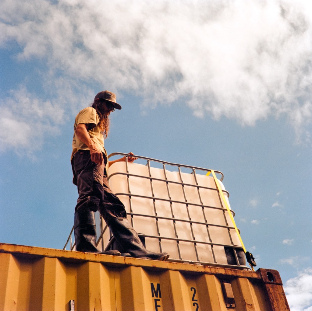 Ian stabilizing an IBC tote