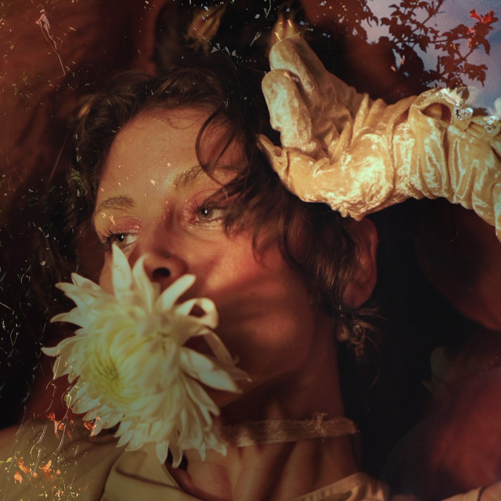 Layered with a photo of me with a white flower in my mouth, and these luxurious gloves I had picked up in Paris a few years ago as a gift to someone I love. This is a still from the music video.